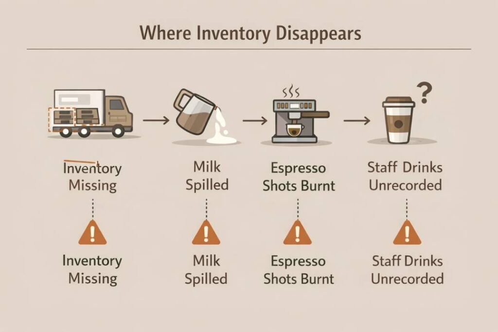 But when you check your coffee shop inventory, you are missing 10 kg of coffee beans.