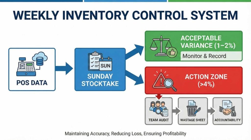 - The Action: If the variance hits 5% and there is no Wastage Sheet explanation, it implies theft or gross negligence.