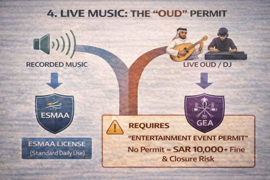 • The Cost: Fees vary by event size, but getting caught without one can lead to a SAR 10,000+ fine and potential closure of your shop.