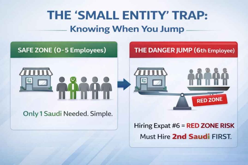 - 0-5 Employees (Small A): You only need 1 Saudi. (Easy).
